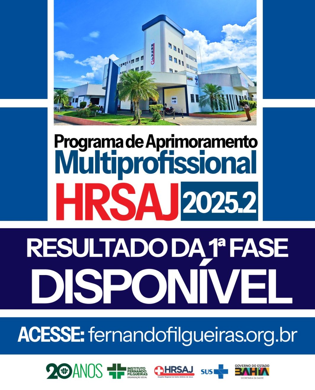 HRSAJ divulga resultado de primeira fase para Aprimoramento Multiprofissional 2025.2