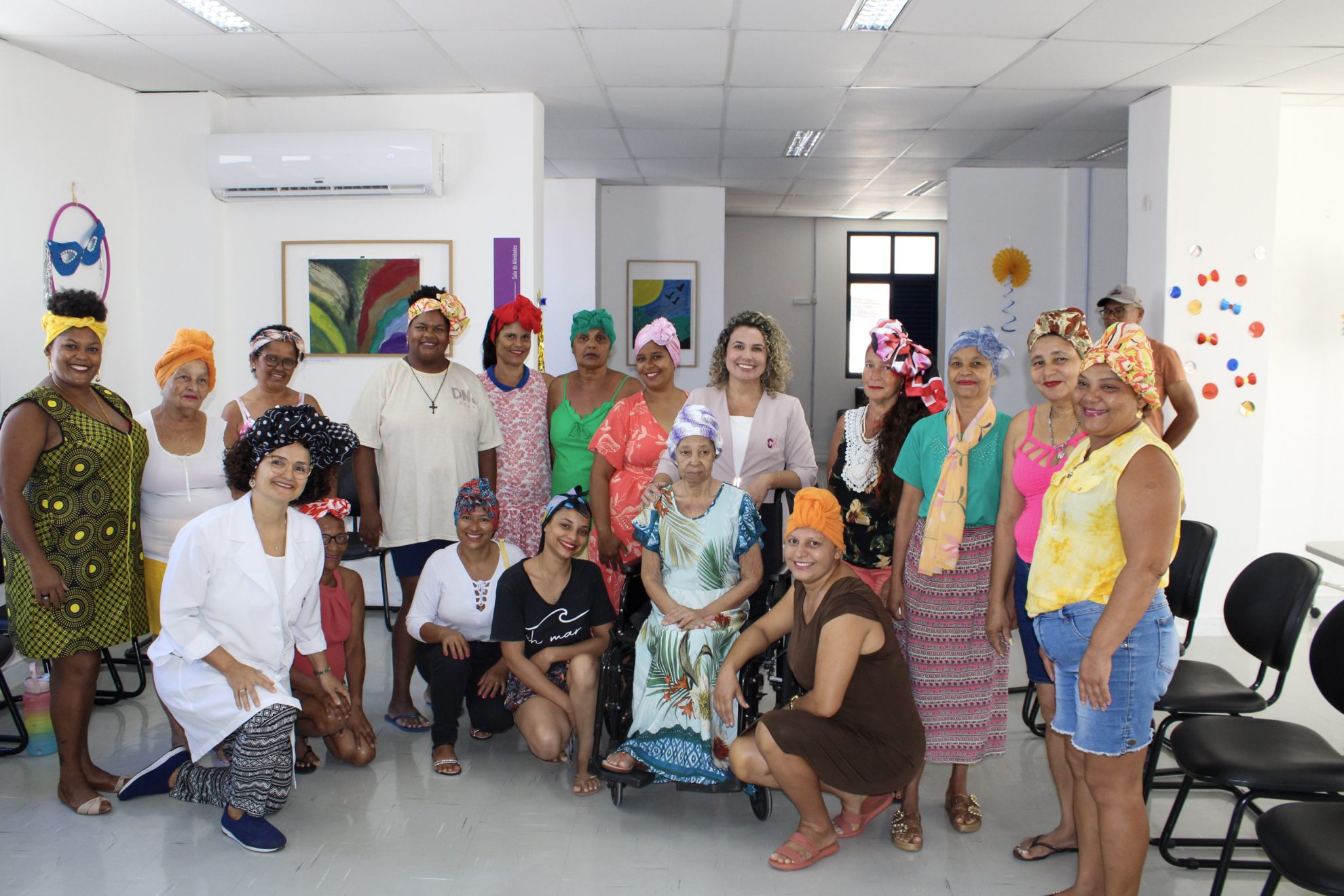 A programação especial ainda contou com uma oficina de turbantes para as pacientes do Tratamento com Amor (Serviço de Oncologia), realizada na última semana. A assistente social Fernanda Borges ministrou uma das atividades e ressaltou a importância da campanha. “Foi emocionante e extremamente importante para mim, não só como profissional, mas como mulher negra, poder vivenciar essa experiência de muita representatividade. O retorno das pacientes foi bastante positivo e deu para perceber o quando elas se sentiram felizes e representadas ao se verem de turbantes”, refletiu Fernanda.